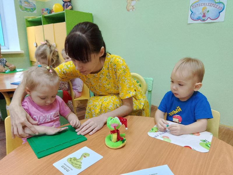 Сегодня воспитанники пробовали слепить из зелёного пластилина змейку. Все дети были вовлечены в работу и старательно лепили. Вот какие получились у мальчишек и девчонок работы!