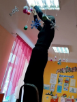 В преддверии новогодних праздников особое внимание уделяется украшению групп и игровых участков. Так, в нашей группе родители с воспитателем создали для малышей неповторимую атмосферу праздника. Уличный игровой участок также преобразился: появилась снежная фигура лисы из мультфильма "Снеговик-почтовик".